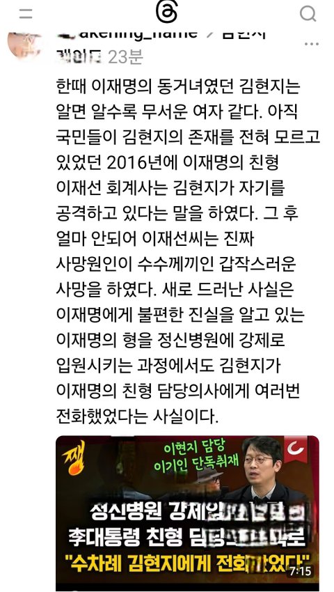 윤석열 검찰이 이재명에 대해서 다 털었는데 김현지에 대해서는 기소조차 못했지. 그게 무엇을 의미하겠니? 하다하다 안되니 이런 걸로 공격하는 거지?