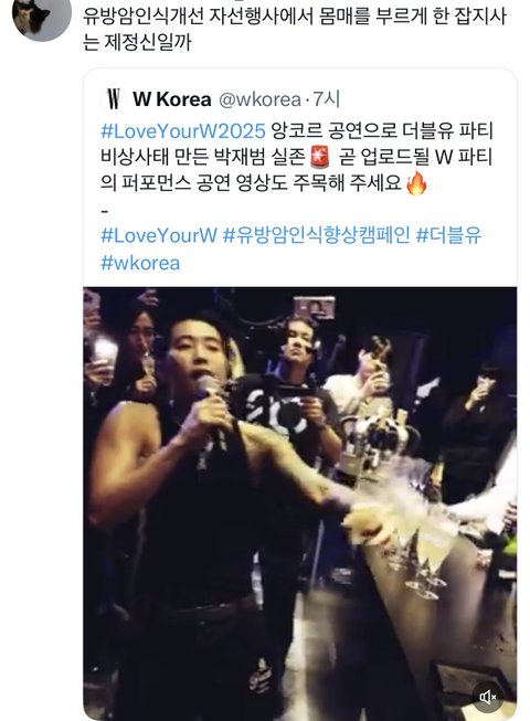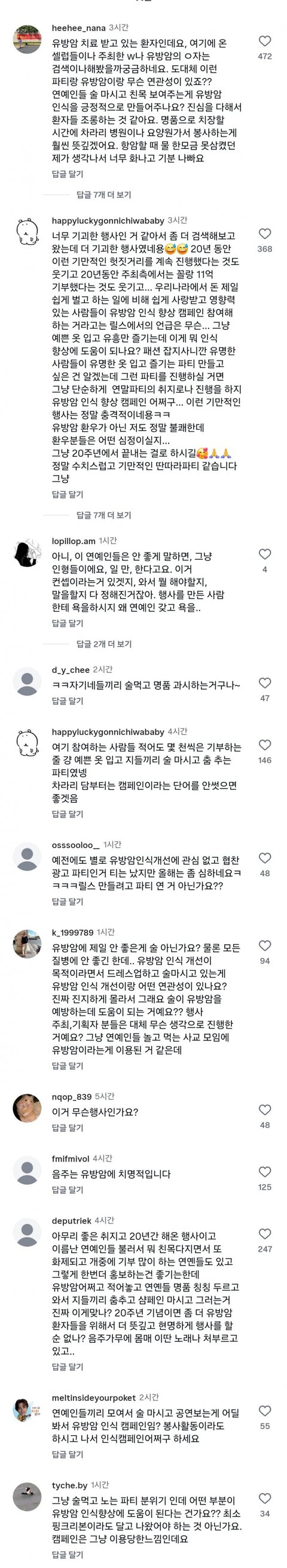 취지는 유방암 인식개선 행사인데, 그냥 아이돌들 배우 불러놓고 술먹고 춤추는 행사임.