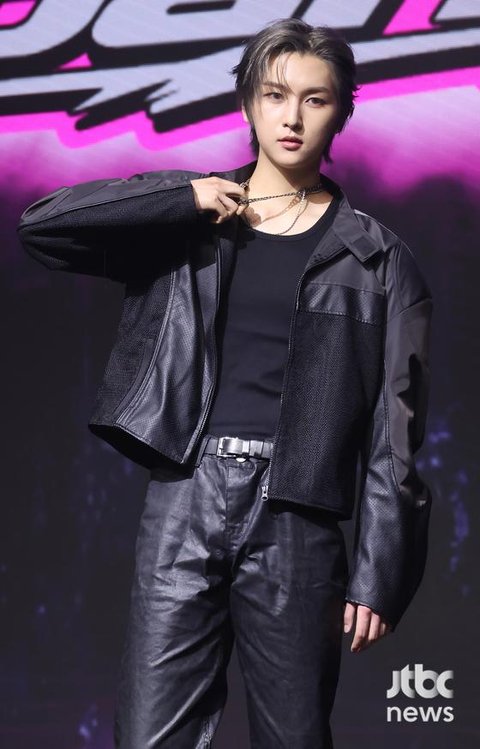 그룹 휘브 인홍이가 9일 오후 서울 성암아트홀에서 열린 네 번째 싱글 앨범 '뱅아웃(BANG OUT)' 쇼케이스 무대에 올라 포토타임을 갖고 있다. 박세완 엔터뉴스팀 기자 park.sewan@jtbc.co.kr