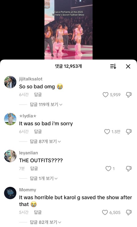 좋아요 백만개 찍힌 공식 영상에서 베댓들 싹 다 별로였단 반응임.. 억까인가 하고 보면 립싱크는 아닌데 음정이 너무 불안하고 라이브다보니깐 날리는 게 너무 많음