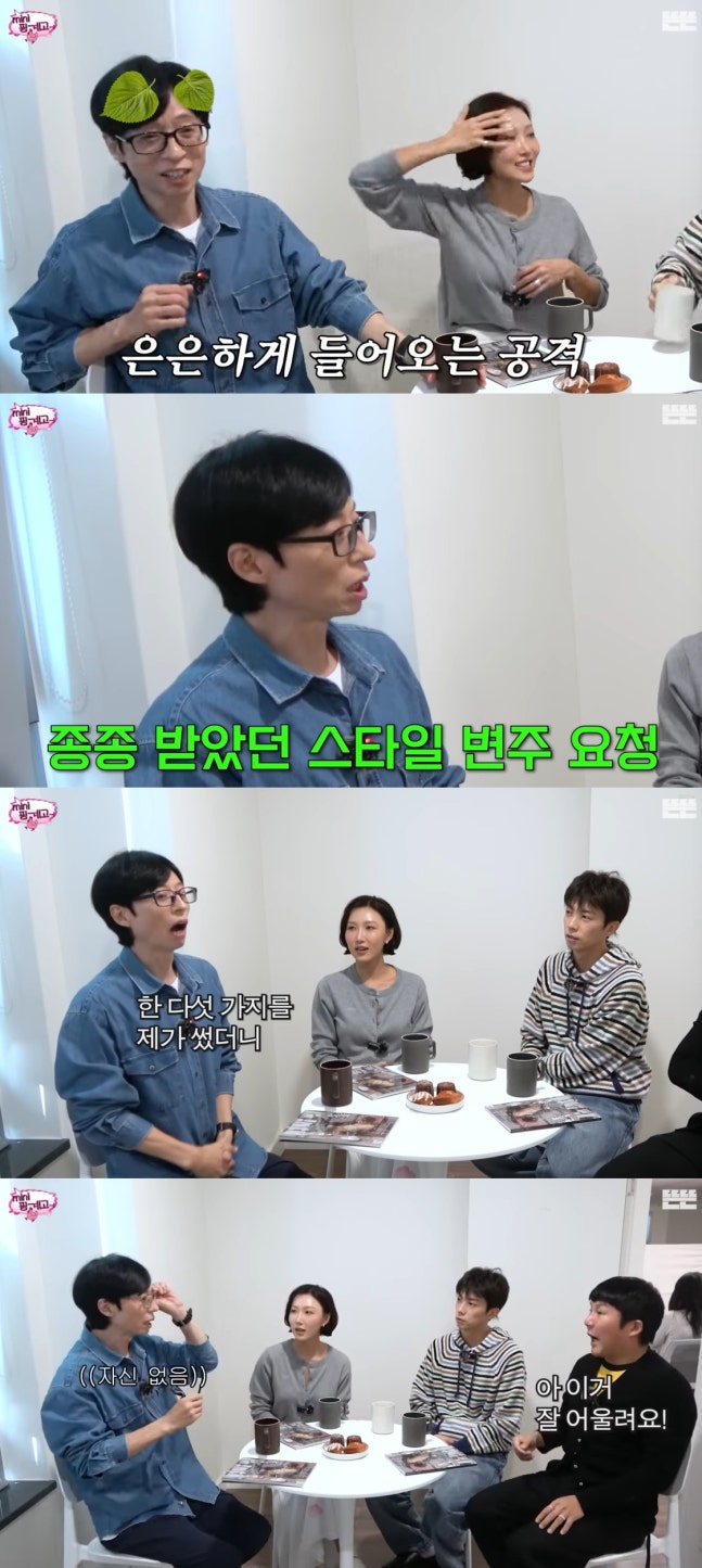 유재석은 "제가 안경도 그런 이야기를 많이 들었다. 왜 그 안경만 쓰냐고 하더라. 그래서 한 다섯 가지의 안경을 썼더니 '아, 왜 그런지 알겠다' 하더라"며 자신은 안경에 따라 외모가 많이 변함을 밝혔다.
