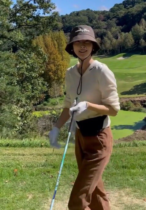 이현이./소셜미디어공개된 영상 속 이현이는 안정된 자세로 수준급 골프 실력을 뽐내 눈길을 끌었다.