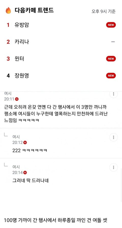 평소에도 지금도 얘네 셋만 까임 에스파 둘이 나가고 아이브 혼자 나감?
