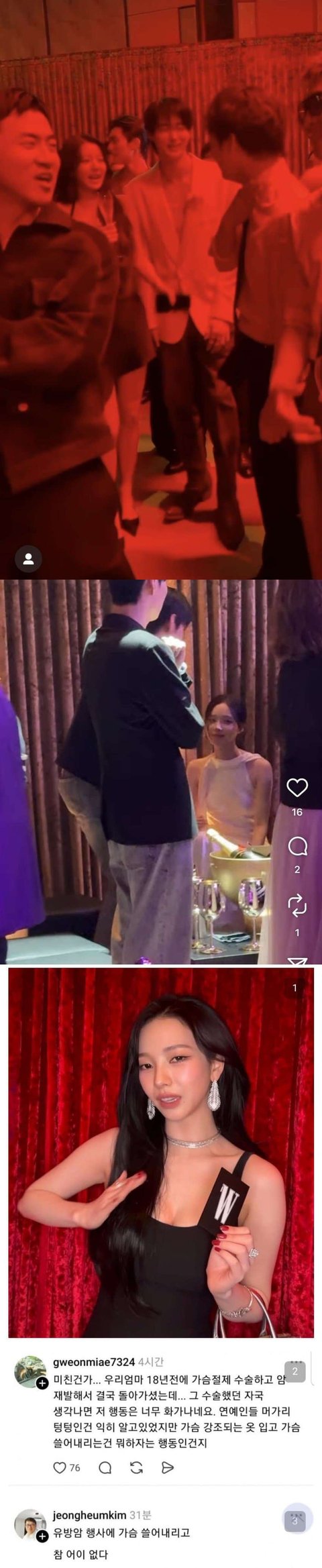 최근 더블유 코리아 행사에서 100명 가까이 되는 연예인이 참석했는데 여시에선 이 세 명만 다음 카페 트렌드에 계속 오르며 하루종일 까이고 있어서ㅇㅇ 여초의 민낯을 본 것 같다는 말이 나옴 근데 트위터랑 네이트판도 똑같은 듯