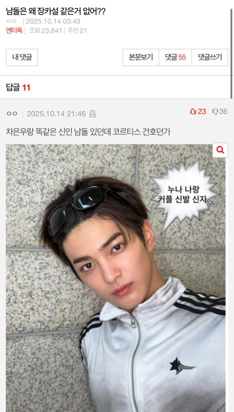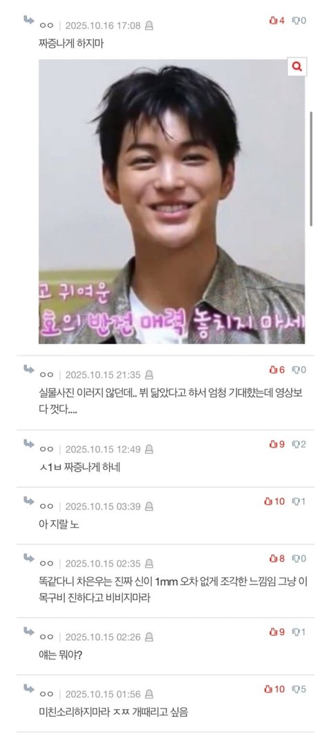 건호 데뷔전부터 같은 사람이 계속 건호나 ㅊㅇㅇ 관련글 마다 ㅊㅇㅇ 이용해서 주입식 영업질 하던데 그만 좀 하길 눈치도 없고 되려 반감만 사서 욕만 먹는데 왜 계속 그러는지 모르겠어
