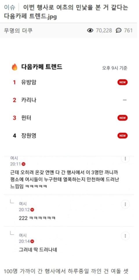라는 의견이 더쿠, 여시에서 나오는 중