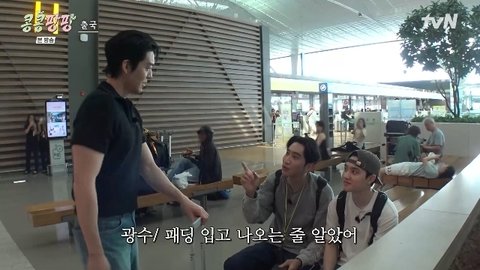 tvN ‘콩 심은 데 콩 나서 웃음 팡 행복 팡 해외 탐방’ 캡처환복 후 한결 편안한 표정으로 등장한 김우빈을 본 이광수는 "약간 패딩 입고 나오는 줄 알았다"고 말했고, 나영석 PD는 "가슴이 터지려고 한다"며 "화장실 앞에서 팔굽혀 펴기 했냐"고 의심했다. 이광수는 "약간 펌핑 하고 나왔네"라고 확신했다.