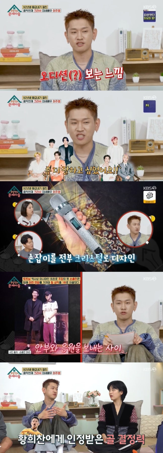실력이 어느 정도냐는 질문에 크러쉬는 “잘하지는 못하는데 골을 잘 넣는다. 이건 희찬이한테도 인정받았다. 받아먹기다”라고 자랑했다.
