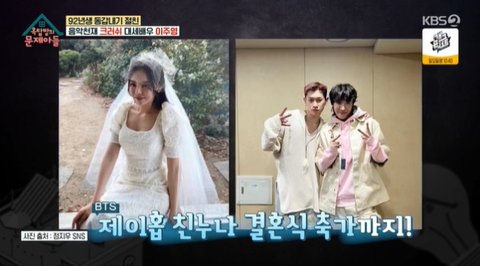(사진=KBS 2TV ‘옥탑방의 문제아들’ 캡처)송은이는 축가 후 어떤 선물을 받았는지 물었다. 크러쉬는 “축가하고 선물을 많이 받지는 않았다. 제이홉 누나 축가했을 때만 받았다. 제이홉 군이 되게 좋은 커스텀 마이크를 선물했다. 콘서트 때 그걸로 불렀다. 소리가 장난 아니다. 그것 한번 경험하니까 다른 마이크를 못 쓰겠다”라고 설명했다.