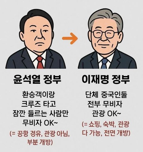 이재명 정부에서 25년 9월 29일부터 시행(김민석 총리가 주재)한 중국인 무비자 입국은 윤석열 정부가 했던 환승 입국이랑 성격 완전 다른데 좌파들 전 정부에 다 덮어씌우는 거짓선동 개역겹쥬?