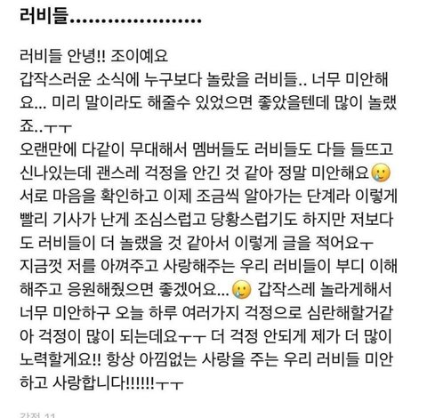 열애설 터지고 곧장 크러쉬와 조이가 팬들에게 남긴글