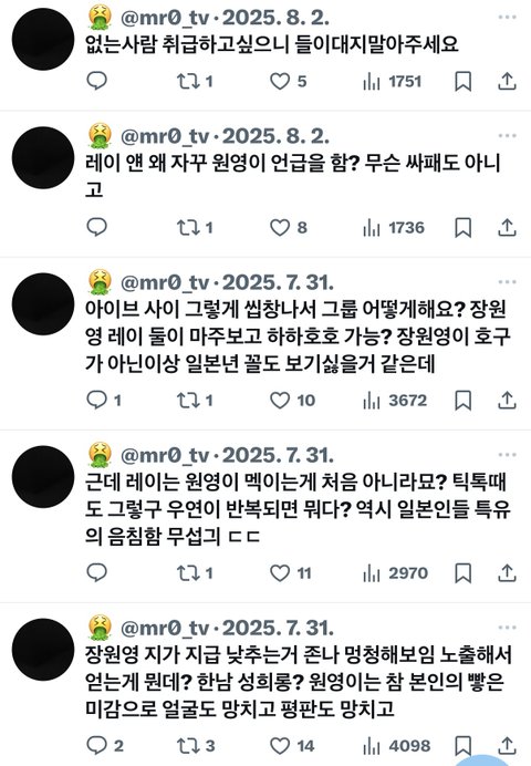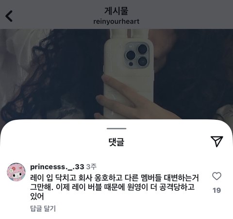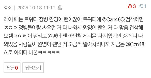장원영팬들 자꾸 레이 패네