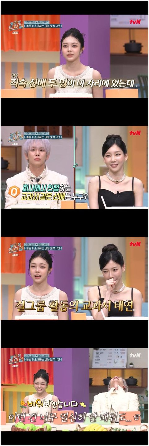 붐은 “이안 씨는 직속 선배가 두 명이나 있다”라고 물었다. 태연과 키는 자신의 분야는 물론 데뷔 당시부터 예능계를 씹어먹던 인재였다. 이안은 “저희가 데뷔할 때 회사에서 무조건 태연 선배님처럼, 소녀시대 선배님처럼 되어야 한다고 했다”라며 '그아탱'이라고 불리는 살아있는 아이돌 전설 태연을 워너비로 꼽았다.
