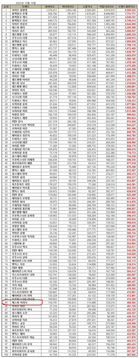 이번달 브평 85위인데 판에서만 보면 완전 원탑 여신임
