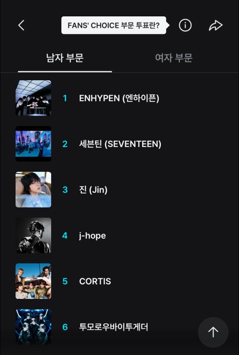 남자 1~6위를 하이브 남돌이 싹쓸이 하고 있어서