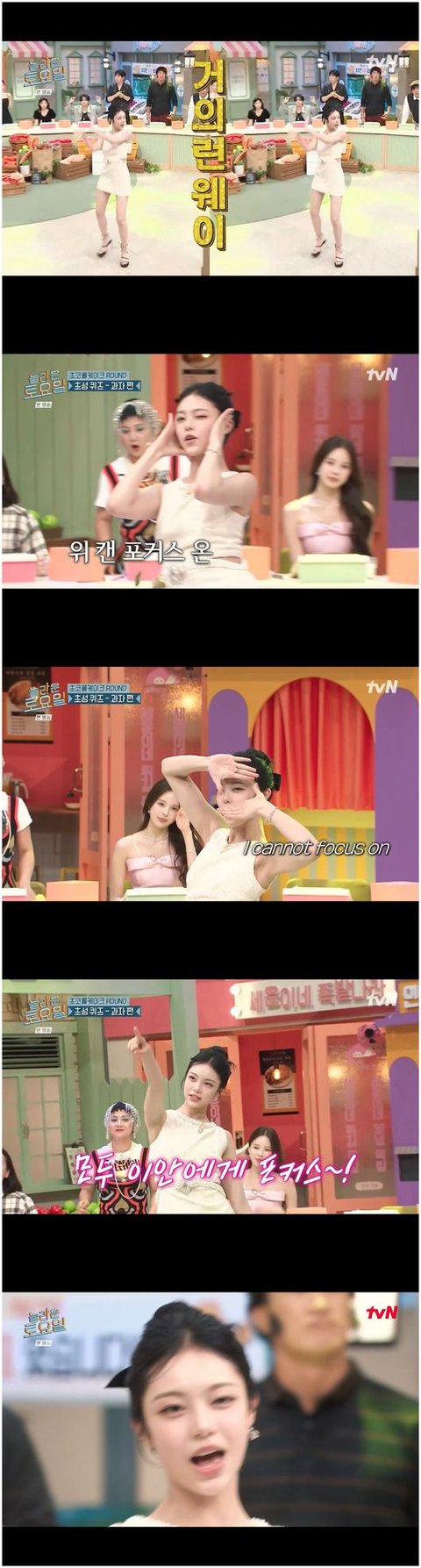 하츠투하츠 이안만이 남은 상황이었다. 이안은 초조함을 감추지 못했다. 그러다 과자 이름 맞히기로 'ㄷㄹㅌㅅ'가 나왔고, 키가 냅다 "이안!"하고 외쳤다. 이안은 차분하게 정답을 맞힌 후 날아갈 듯 중앙 무대로 가 늘씬한 팔다리로 파워풀한 춤을 포인트를 짚어가며 춰내 환호를 받았다./osen_jin0310@osen.co.kr