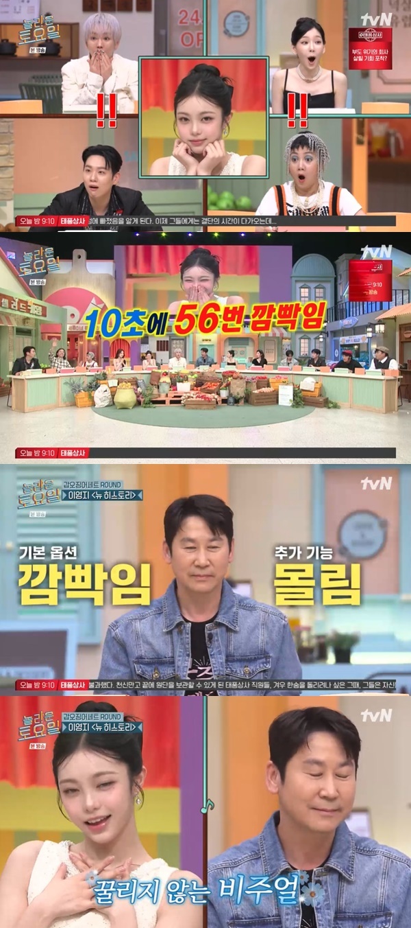 [뉴스엔 유경상 기자] 하츠투하츠 이안이 눈 깜빡 개인기를 신동엽에게 뺏겼다.