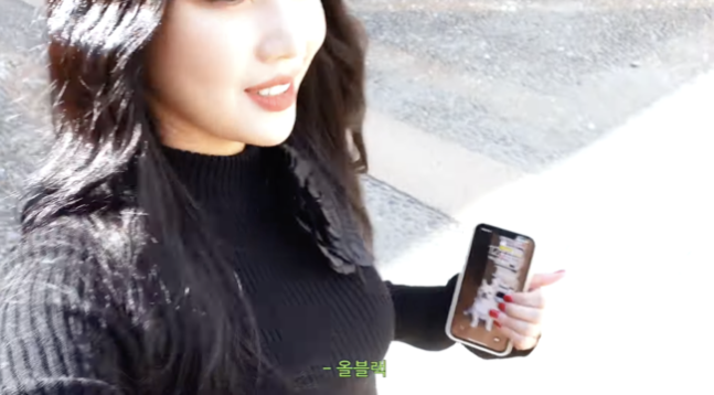 영상 속 조이는 올블랙 착장을 선보이며 "올블랙에 맞게 제가 오늘 앞머리도 더 짧게 자르고 머리도 붙여서 시크하게 해봤다"라며 미모를 자랑했다.