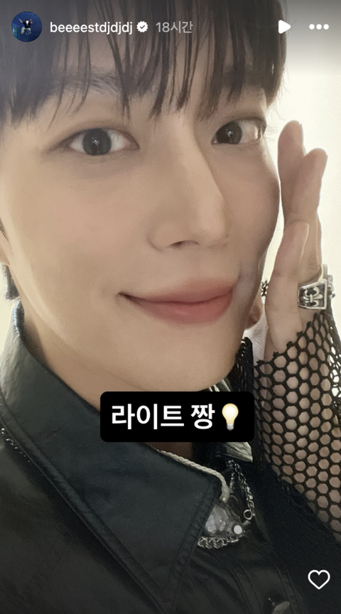 윤두준은 18일 자신의 인스타그램스토리에 “라이트 짱”이라는 메시지와 함께 셀카 사진을 게재했다. 라이트는 하이라이트 팬덤명. 사진 속 윤두준은 훈훈한 비주얼을 뽐내며 팬들에게 따스한 미소를 날리고 있다.
