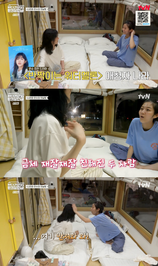 식사를 마친 후 장나라는 신은수와 함께 잠자리에 들 준비를 하며 편안한 수다를 이어갔다. 장나라는 신은수에게 최근 종영한 드라마 '반짝이는 워터멜론'을 재미있게 봤다고 말하며 친근함을 드러냈다.