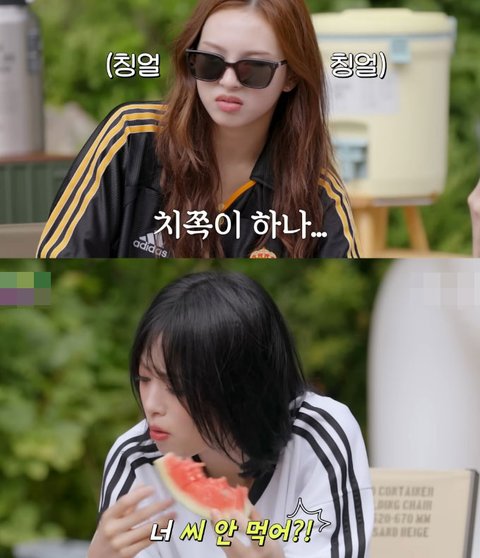 수박 마시고 있는 아현이 옆에 아돈라이크 씨..