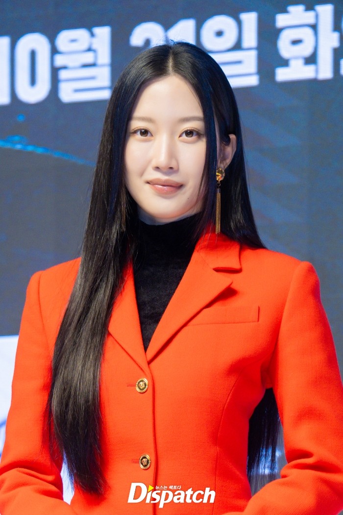 문가영은 블랙 타이즈로 날씬한 각선미를 뽐냈다. 강렬한 레드 재킷으로 포인트를 줬다. 아름다운 미모가 시선을 사로잡았다.