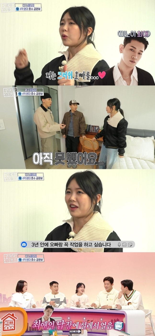 사진=MBC 예능 ‘구해줘! 홈즈’그런가 하면 미노이는 “저는 크러쉬 오빠를 너무 좋아해 공연 관람도 했다”며 “실제로 아직 못 만났다”라며 설레는 팬심을 이야기했다.
