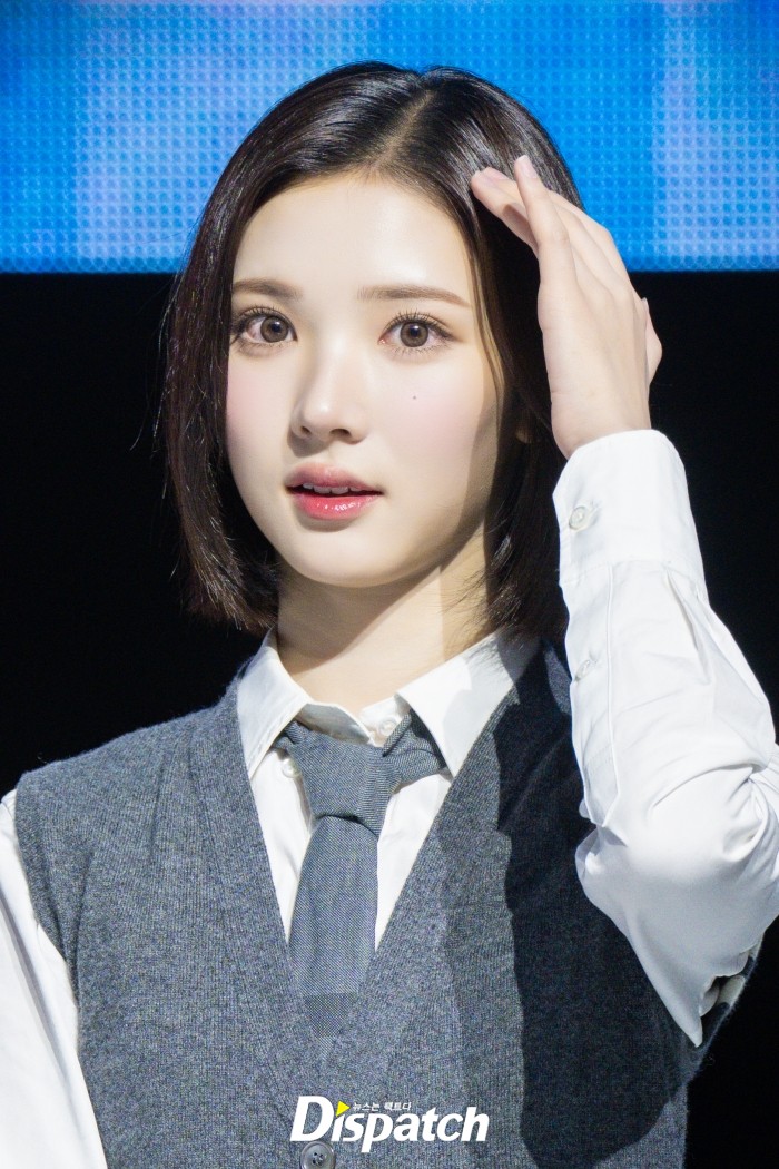 하츠투하츠는 스쿨룩 패션으로 청순한 자태를 뽐냈다. 지우는 단발머리로 인형같은 자태를 뽐냈다.