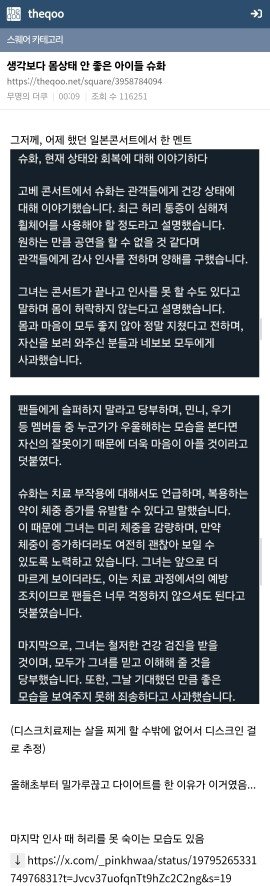 그래서 팬들은 슈화 허리가 안 좋아졌나보다 추측함