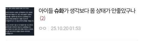 제목 : 생각보다 몸상태 안 좋은 아이들 슈화