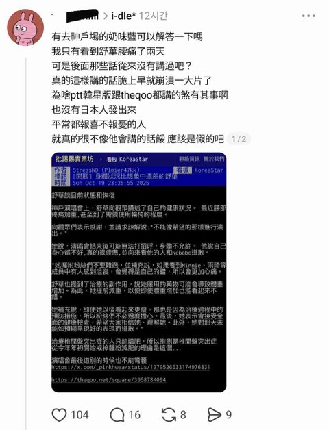 슈화팬들 하다하다 슈화 건강 상태까지 날조함