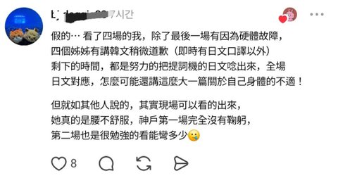 저 글에 콘서트 일본콘 다 가신 팬분이 답글 달았음