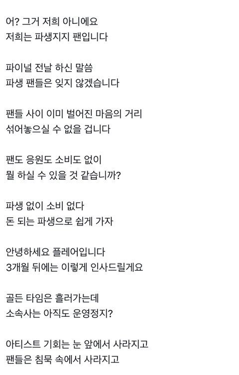 두명 번갈아서 파이널 투표해달라니까 한 멤버가 버블인지 뭔지로 난 안할거야~ 이래서 이정준민 팬이랑 휘브팬들이랑 사이가 안좋아졌는데