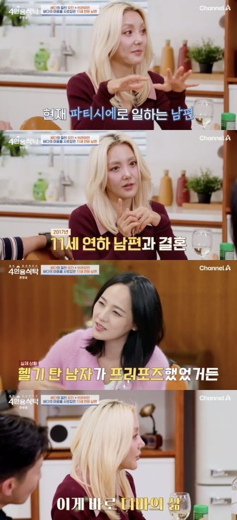 바다는 결혼한 지 8년 되었다고 말했다. 바다는 “지금은 파티시에로 일하고 있다. 원래는 평범한 회사원이었다. 11살이 적다. 윤리적으로 안 된다고 생각해 거절했는데 포기하지 않더라”라고 설명했다.