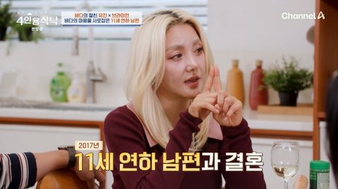 '4인용식탁' 바다가 11세 연하 남편과 결혼한 이유를 고백했다.