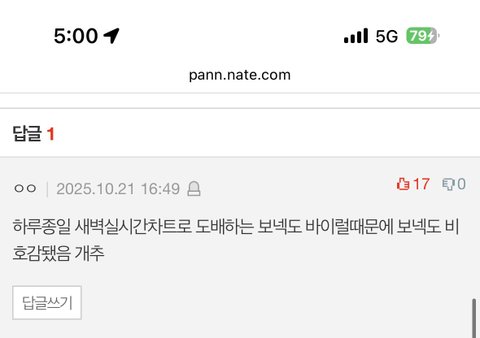 하루종일 새벽실시간차트로 도배하는 보넥도 바이럴때문에 보넥도 비호감됐음 개추