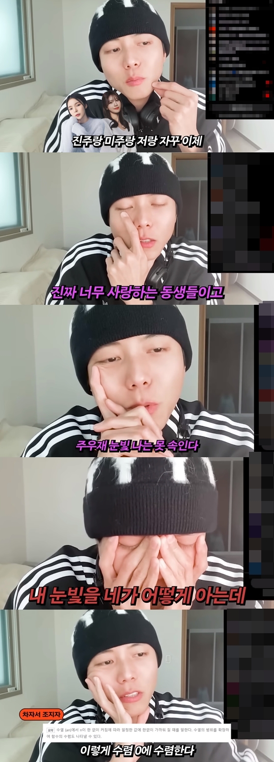 이어 "그런데 여러분들이 생각하는 그런 글들이 자주 올라오더라. 얼마 전에 '주우재 눈빛 나는 못 속인다', '얼마 안있다가 연애설 터질 듯'. 내 눈빛을 어떻게 아냐"라며 눈을 감았다.