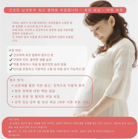 캄보디아에서 자연임신 시켜주실 건강한 남성 모집