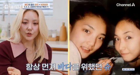 채널A ‘절친 토큐멘터리 4인용식탁’이어 유진은 슈에 대해서는 "뽀글 머리였다. 김희선 언니가 한 뽀글머리에 빨간 립스틱 하고 어른처럼 있으니까 '바다 언니 아니고 얘가 날라리네' 싶었다. 둘 다 너무 예뻤다"고 회상했다.