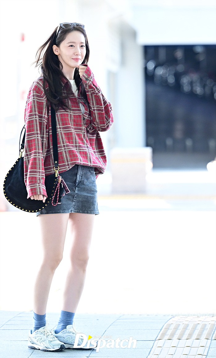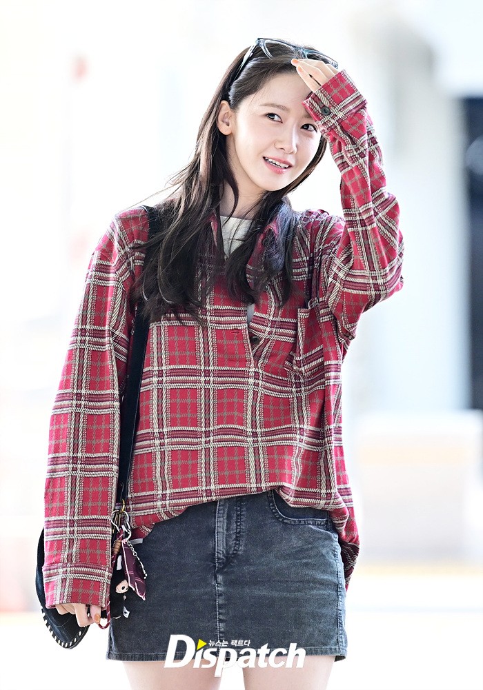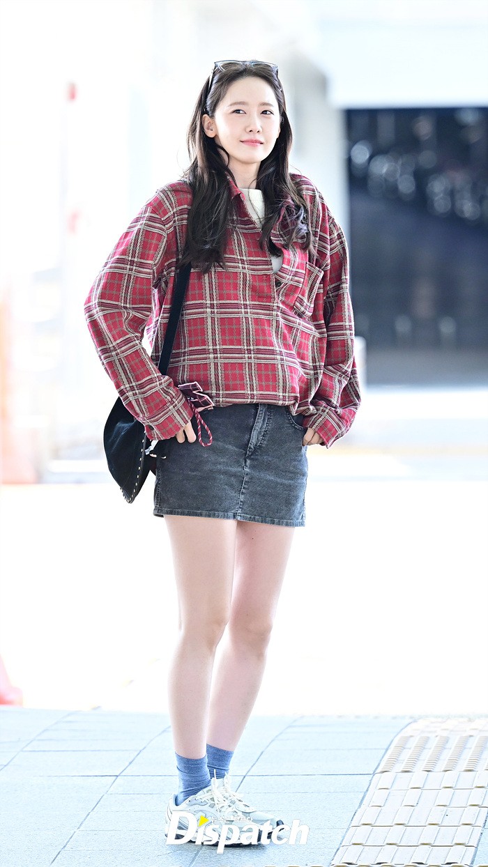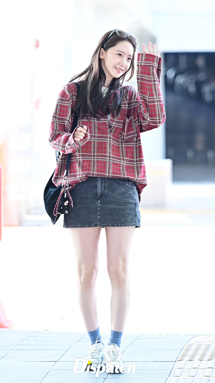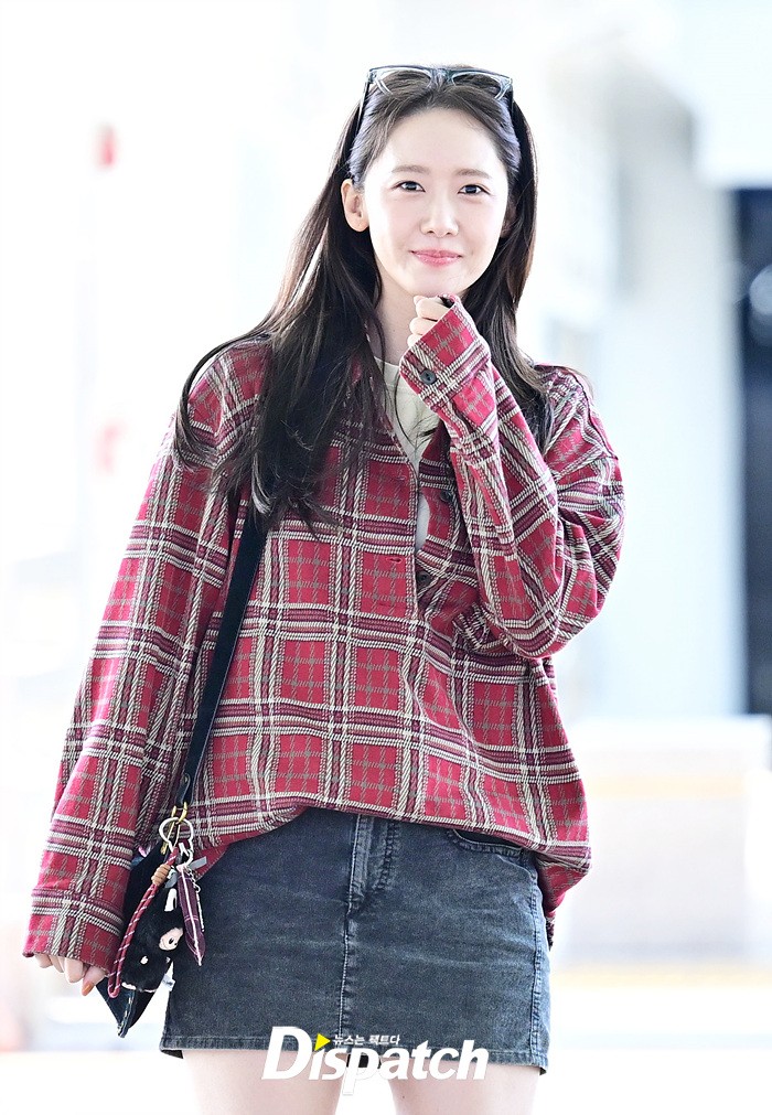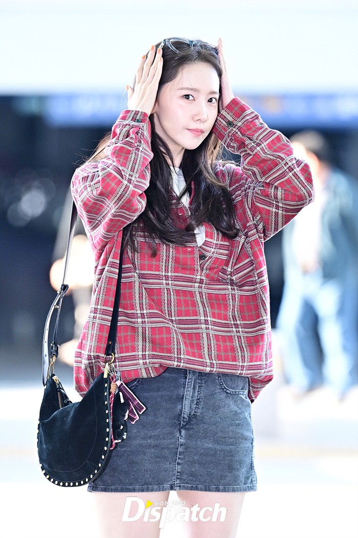 임윤아는 청순한 비주얼로 시선을 사로 잡았다. 체크무늬 셔츠와 데님 미니스커트로 연출한 캐주얼한 공항패션도 돋보였다.