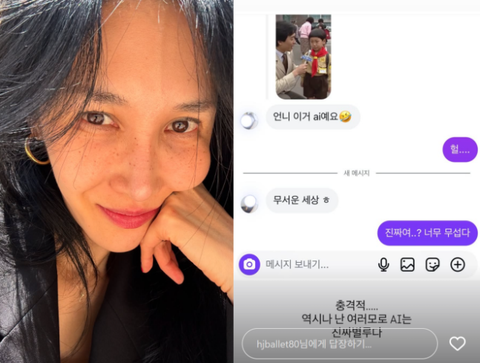 순수함이 느껴지는 그때 그 시절 영상이었지만 한 누리꾼은 윤혜진에게 DM(다이렉트 메시지)을 통해 "언니 이거 AI에요"라고 제보했다.