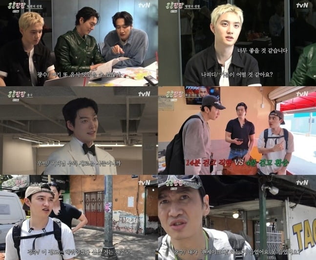 사진=tvN지난 17일 처음 방송된 tvN 예능 '콩 심은 데 콩 나서 웃음팡 행복팡 해외 탐방'(이하 '콩콩팡팡')은 '콩 심은 데 콩 나고 팥 심은 데 팥 난다'(콩콩팥팥)의 두 번째 스핀오프 프로그램이다. 이광수, 김우빈, 도경수의 멕시코 자유여행을 담는다.