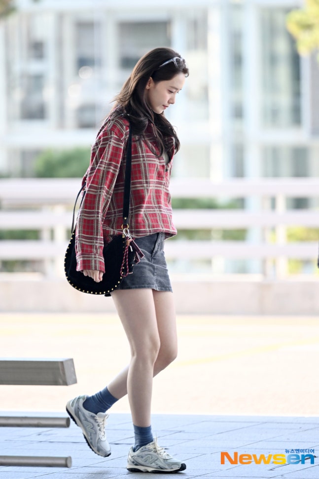 윤아윤아는 편안한 운동화와 투명테 안경으로 포인트를 더해 세련된 공항 패션을 완성했다.