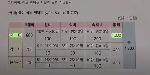 그래도 대표라고 여행 경비 나눠놓은거 보소
