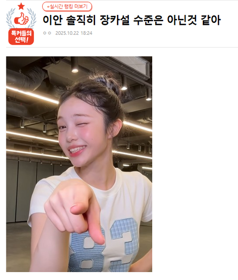 설윤이 뭐? 이안보다 화제성이 높아? 인기가 높아? 요즘 커뮤 안하냐 설윤은 장카 언급할 때 끼워주는거 아니면 거의 관심도 없음 이안은 다들 차세대 장카로 보고 있지만