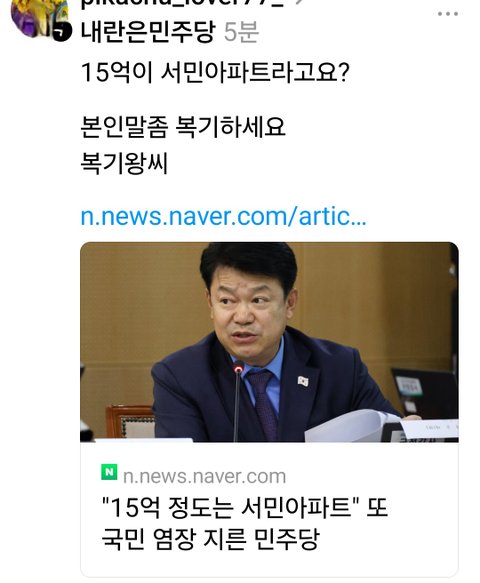 "15억 정도는 서민 아파트"