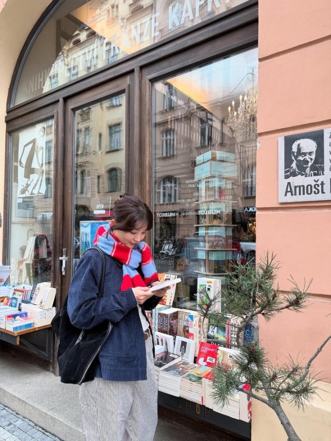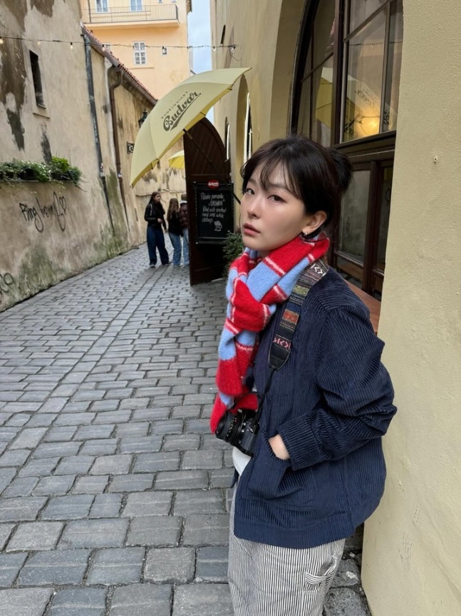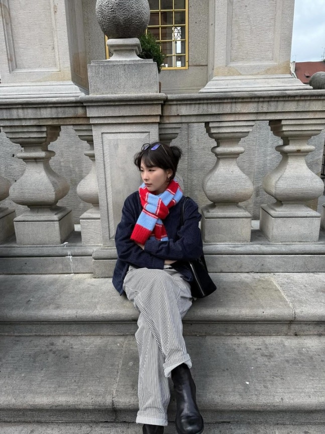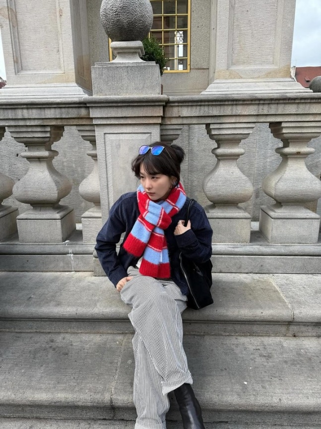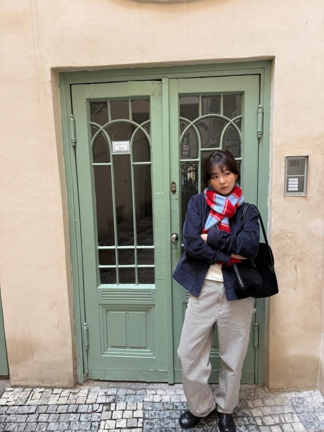 공개된 사진 속 슬기는 남색 코듀로이 재킷에 스트라이프 팬츠, 붉은 체크 머플러를 매치해 따뜻하면서도 빈티지한 분위기를 자아냈다. 여기에 블랙 숄더백과 미니멀한 이어링으로 포인트를 더하며, 내추럴한 스타일링 속에서도 세련된 패션 감각을 드러냈다.