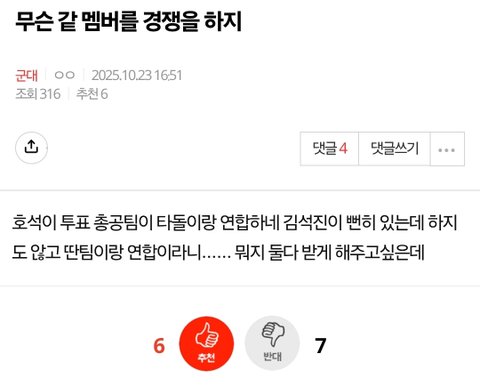 역투표는 그팀에서 하고 왜 ㅈㄹ임