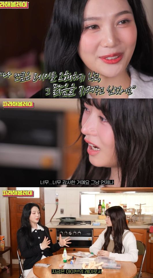 끝으로 조이는 "지금은 아이브 레이로서 활동하고 미래에도 할거지만, 힘든 건 힘들다고 이야기하고, 레이 자신을 잃어버리면 안 된다. 끝없이 내가 뭘 좋아하지, 세상에 신기한 게 뭐가 더 있지?를 계속 찾아봐야 한다. 가장 중요한 건 재미있게 사는 것 같다"라고 조언을 건네 훈훈함을 자아냈다.