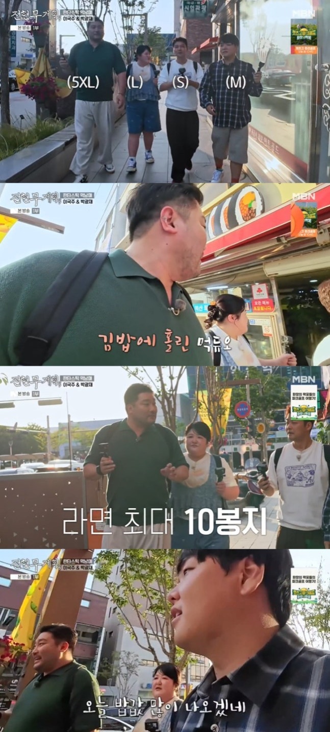 길을 걷던 중 이국주와 박광재는 김밥에 시선이 팔렸다. 곽튜브는 “김밥 최대 몇 줄 드시나”라고 물었고, 박광재는 “몇 줄 먹는지 세면서 먹지 않는다. 라면은 최대 10개까지도 먹는다”라고 답했다.